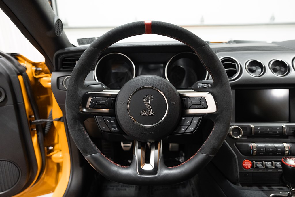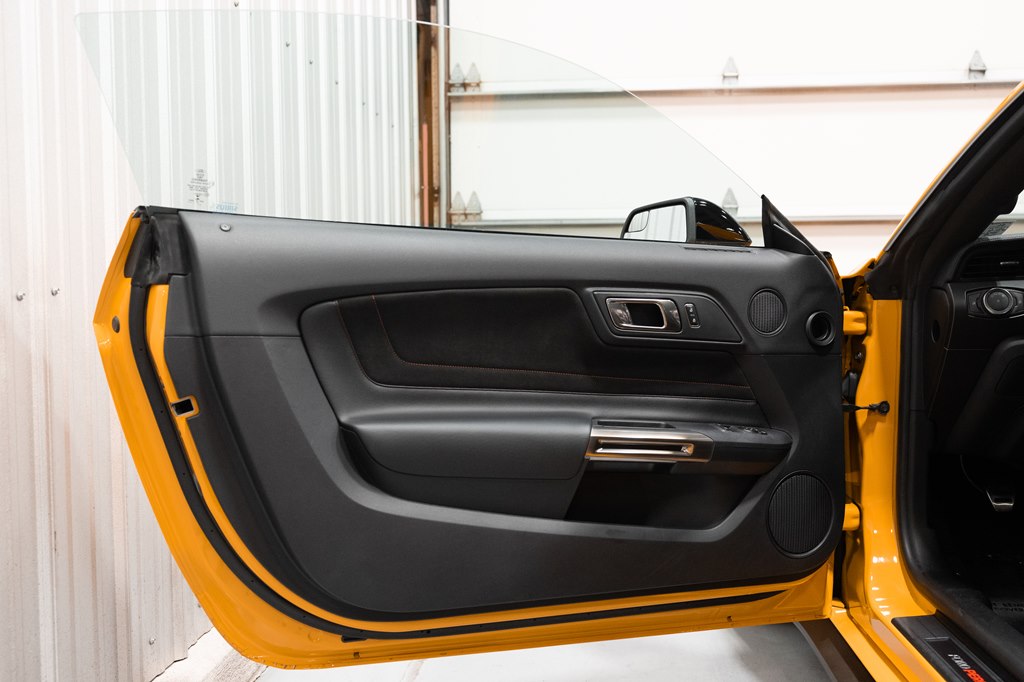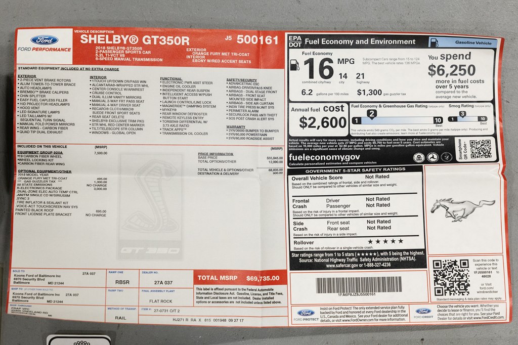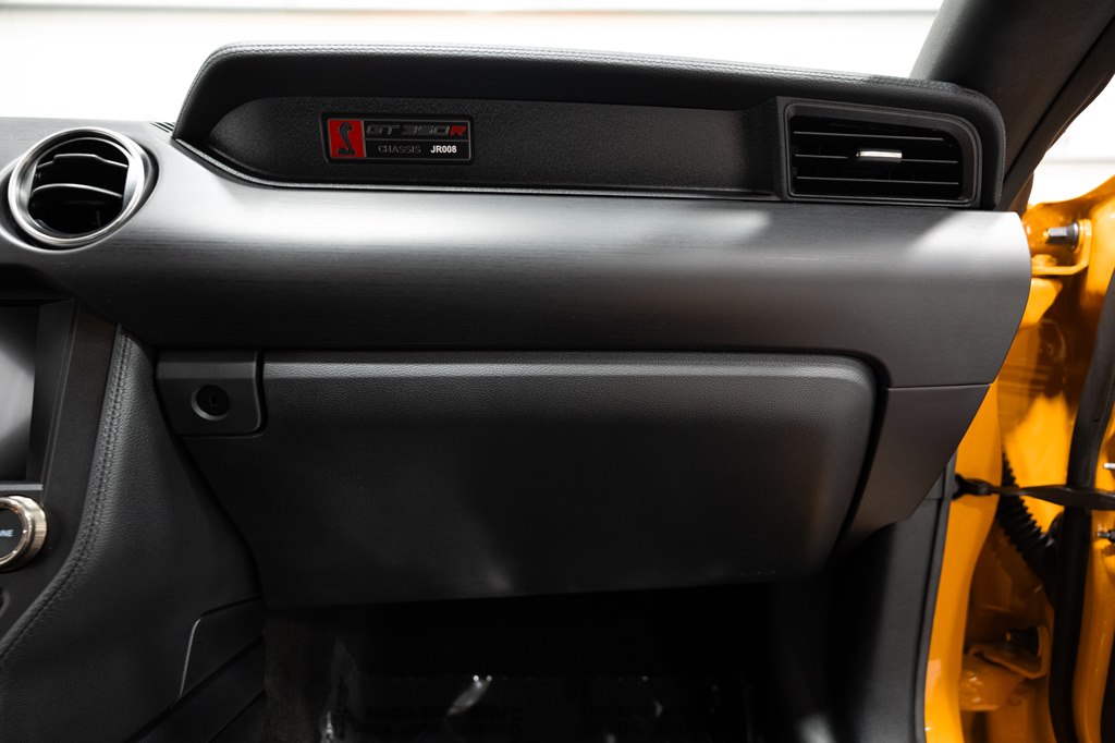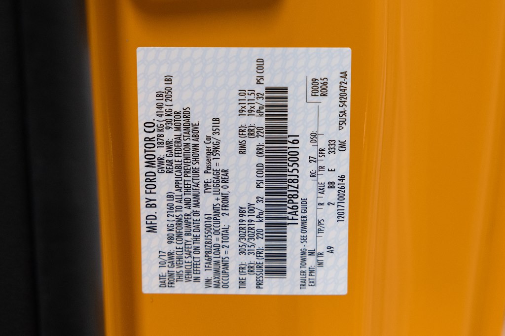 Offered for sale is this 2018 Ford Mustang GT 350 R, finished in Orange Fury Metallic Tri-Coat over a black interior, powered by a 5.2-liter 8-cylinder engine running power to the rear wheels through a 6-speed manual transmission, with 2,196 miles on the odometer as of this writing. Starting with the very first Mustangs in the 1960’s, the GT 350 model has been the driving enthusiast specification. For this 2018 S550 chassis, that starts with the ”Voodoo” engine, a 526hp, naturally aspirated DOHC 32-valve V8 with a flat-plane crank, an 8,250 rpm redline, and is mated to a Tremec TR-3160 six-speed manual transmission. Chassis upgrades include aluminum suspension assemblies with stiffer bushings, larger anti-roll bars, Brembo six-piston front brakes with 15.5-inch rotors, and a stiffer body shell. This ”R” spec GT350, tuned more for the track then the base model, adds stiffer suspension settings, more aggressive aero for better downforce, higher capacity oil and water cooling, and a less restrictive exhaust. This is a collector grade example in the rare Orange Fury finish, with only 44 produced with no center stripe. Maintenance records show eight oil changes, one for every year since new, despite the low mileage. PPF protection covers every exterior surface but the roof and the rear spoiler, and the finish is excellent. Extra equipment in the sale includes the full (and never installed) rear seat installation kit, and the commemorative kit given to every GT350 owner.