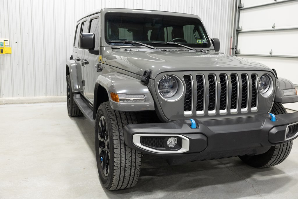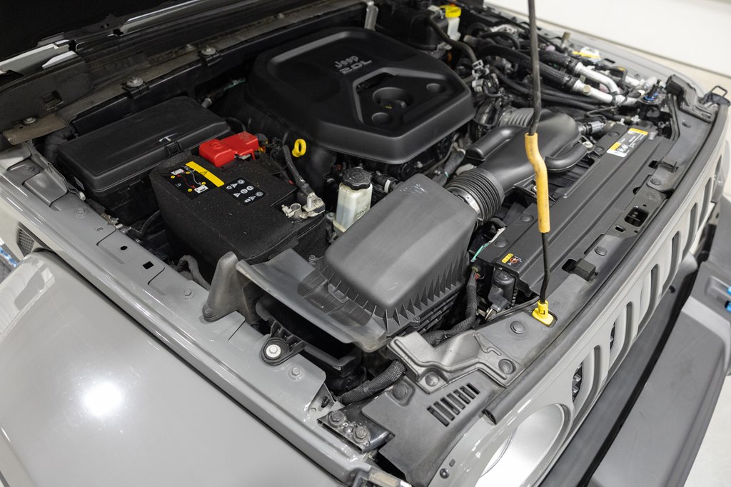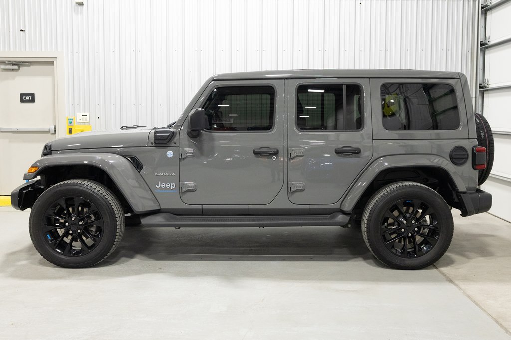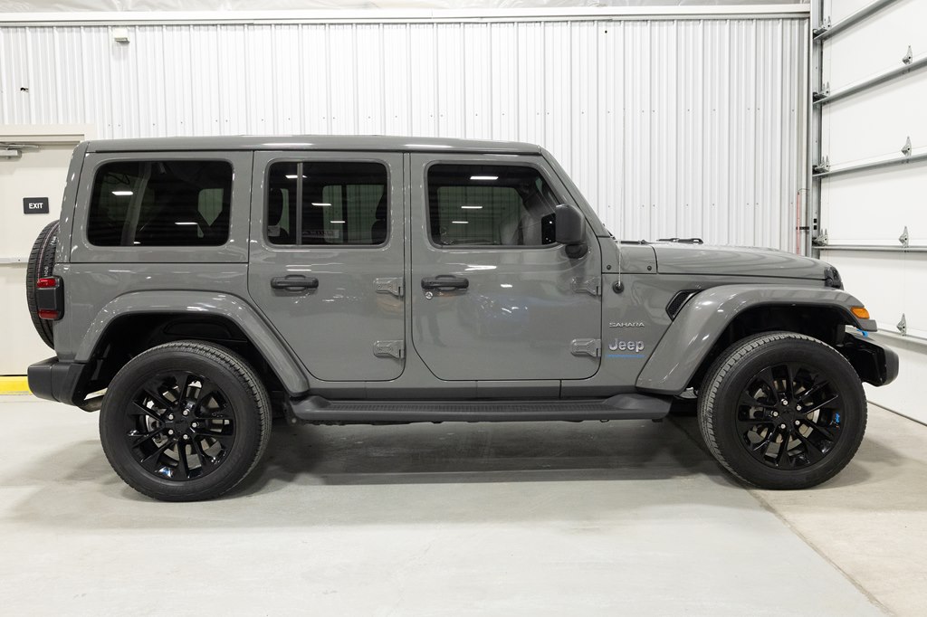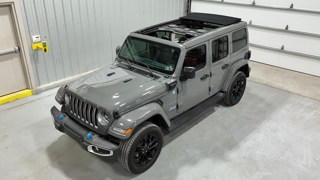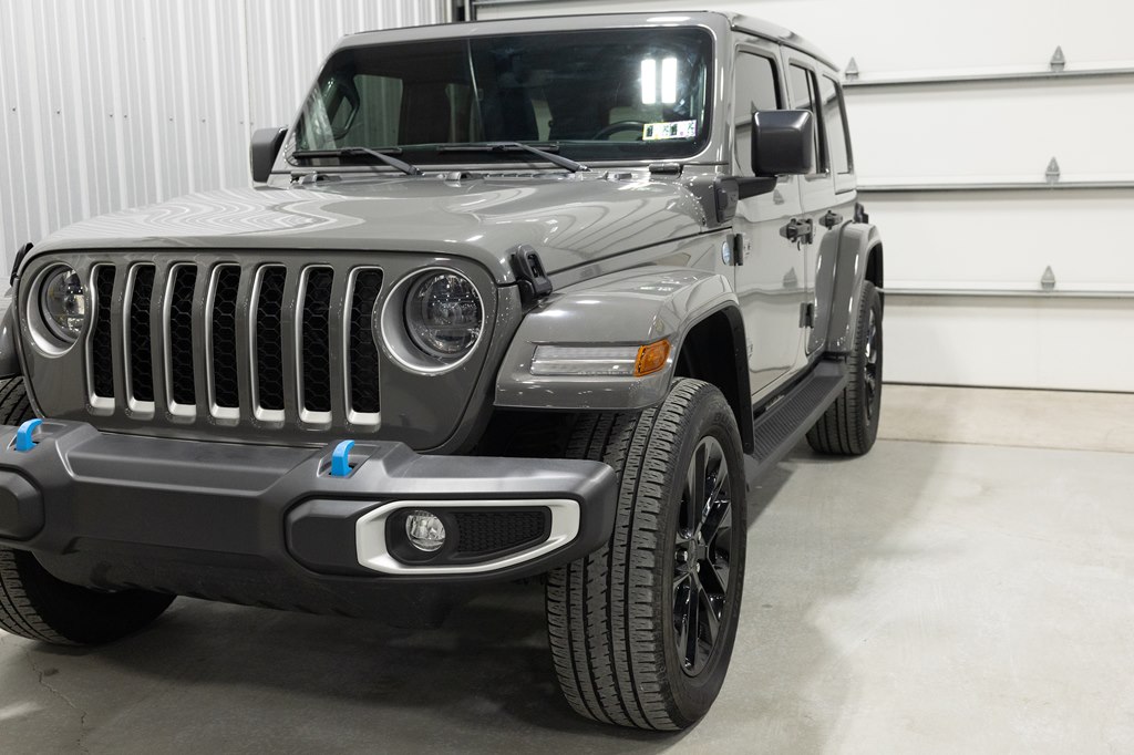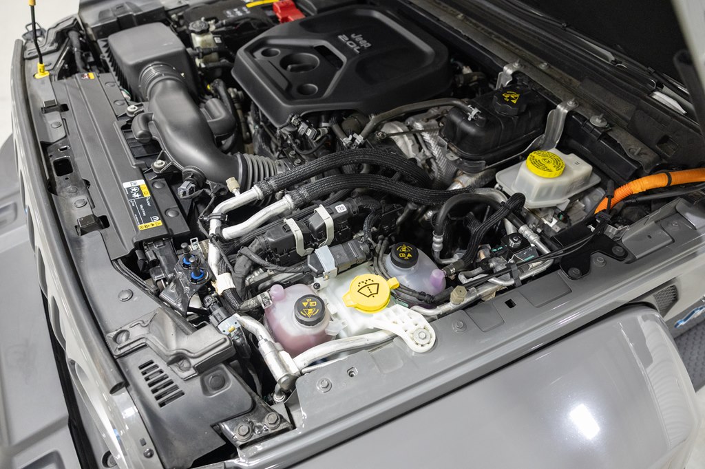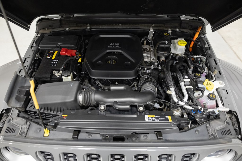 Offered for sale is this 2023 Jeep Wrangler Sahara 4xe 4 door hard top with SKY One-Touch roof, finished in Sting-Gray Metallic over a black cloth interior, powered by a hybrid drivetrain combining a 2.0-liter 4 cylinder engine with two electric motors with battery assistance, running power through a full time 4-wheel drive system with an 8-speed automatic transmission, with 35,125 miles on the odometer. The Jeep Wrangler is the American icon that needs no introduction. An offspring of the original Willys Jeep, the CJ/Wrangler product line has been both popular and almost impervious to any market trends or potential competition, with civilian models available since the end of World War II. Even with their steady popularity, it was the addition of a four-door option in 2007 that saw a massive surge in sales with the increased versatility that came with the bigger platform. This example of the Wrangler is the 4xe hybrid model, and critically, has records for its recently performed battery recall – one that many hybrid Jeeps are still waiting for. Specifications for this Wrangler include the Sahara package with LED headlamps, Uconnect Entertainment system with the 8.4-inch center display, Android Auto and Apple CarPlay, the Cold weather group with remote start, heated seats and steering wheel, Sky One-Touch retractable top, Selec-Trac full time 4wd, and rear window wiper with defroster.