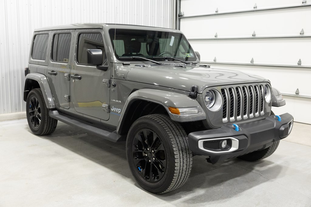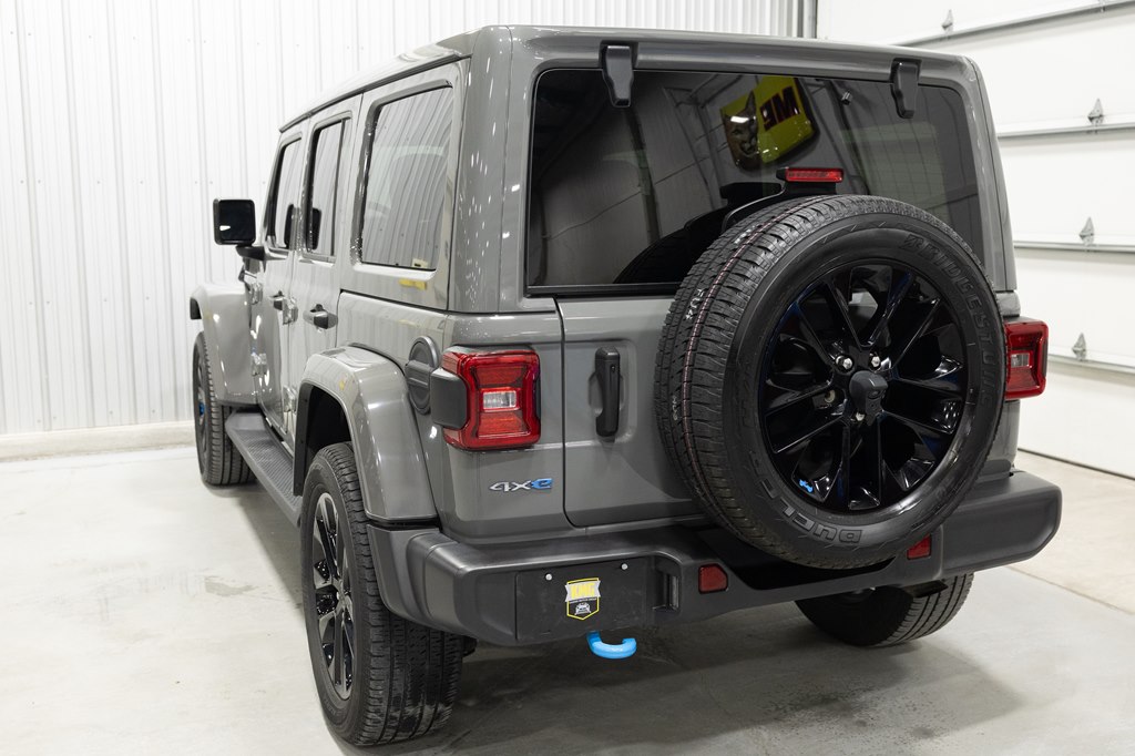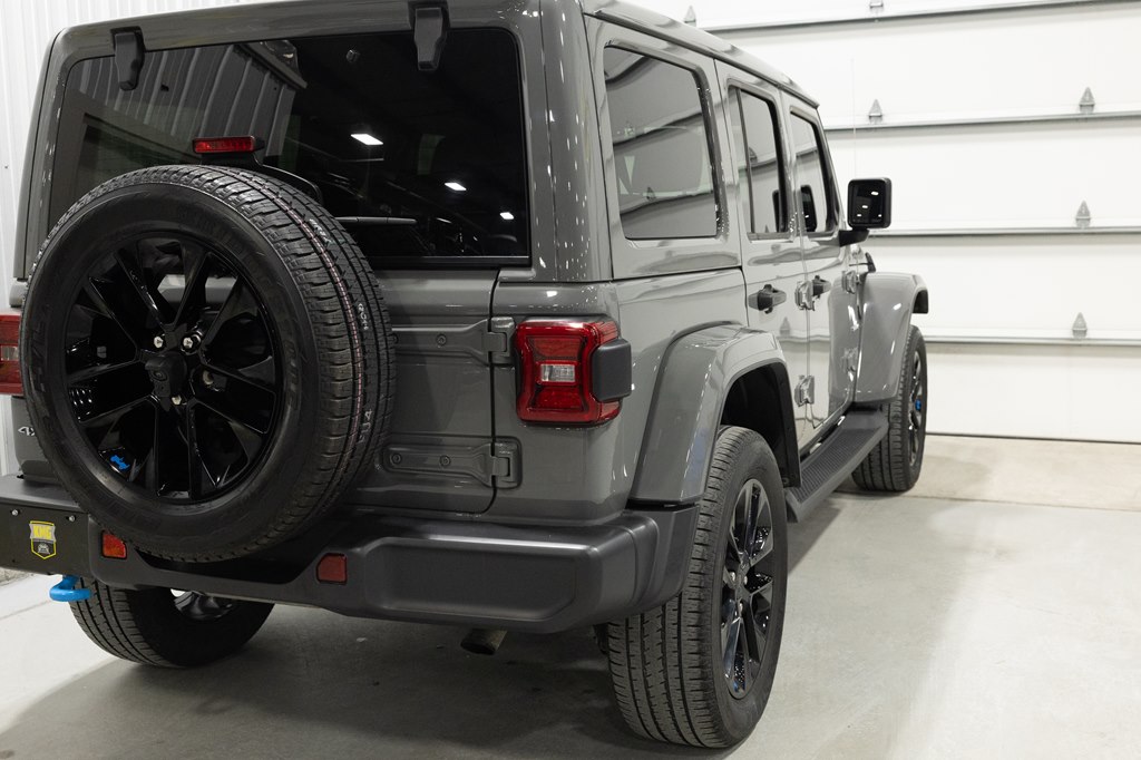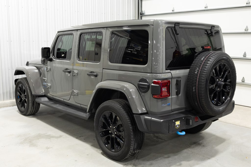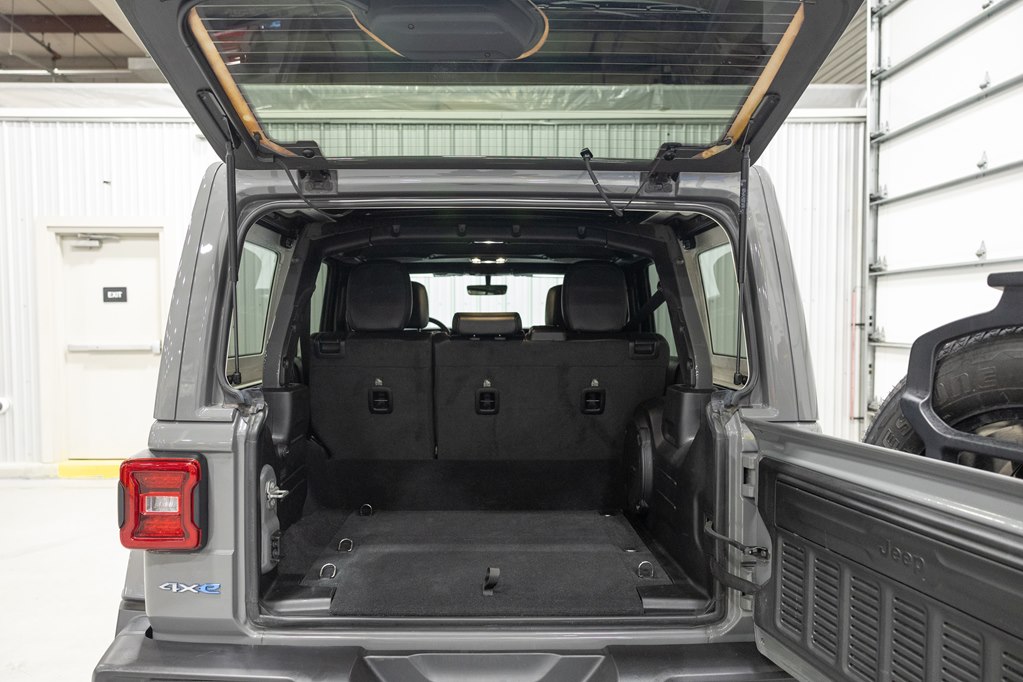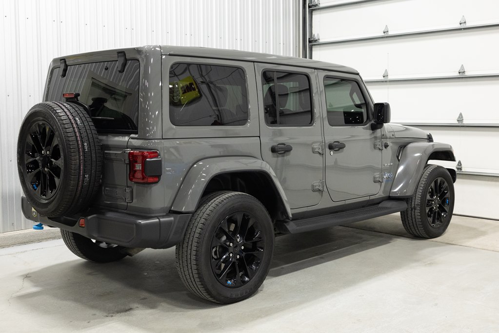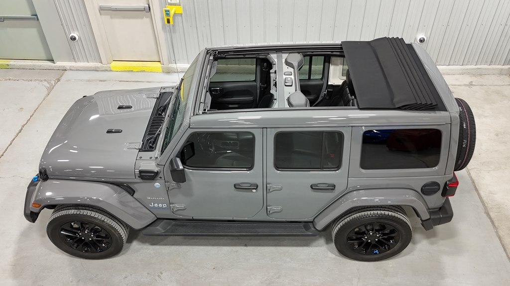 Offered for sale is this 2023 Jeep Wrangler Sahara 4xe 4 door hard top with SKY One-Touch roof, finished in Sting-Gray Metallic over a black cloth interior, powered by a hybrid drivetrain combining a 2.0-liter 4 cylinder engine with two electric motors with battery assistance, running power through a full time 4-wheel drive system with an 8-speed automatic transmission, with 35,125 miles on the odometer. The Jeep Wrangler is the American icon that needs no introduction. An offspring of the original Willys Jeep, the CJ/Wrangler product line has been both popular and almost impervious to any market trends or potential competition, with civilian models available since the end of World War II. Even with their steady popularity, it was the addition of a four-door option in 2007 that saw a massive surge in sales with the increased versatility that came with the bigger platform. This example of the Wrangler is the 4xe hybrid model, and critically, has records for its recently performed battery recall – one that many hybrid Jeeps are still waiting for. Specifications for this Wrangler include the Sahara package with LED headlamps, Uconnect Entertainment system with the 8.4-inch center display, Android Auto and Apple CarPlay, the Cold weather group with remote start, heated seats and steering wheel, Sky One-Touch retractable top, Selec-Trac full time 4wd, and rear window wiper with defroster.