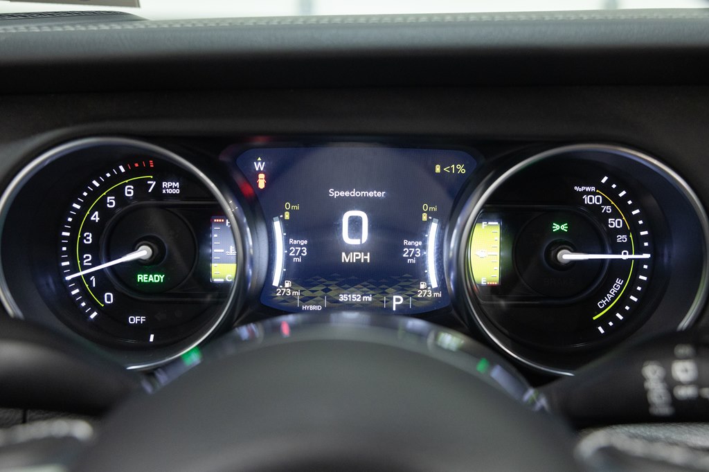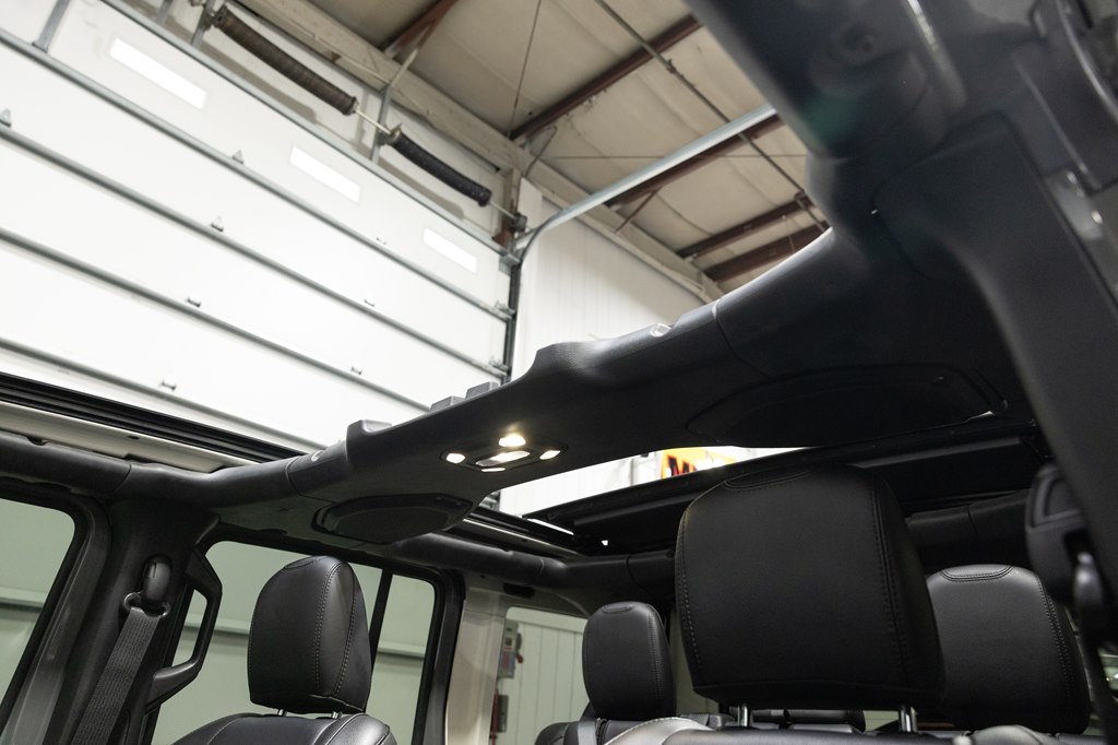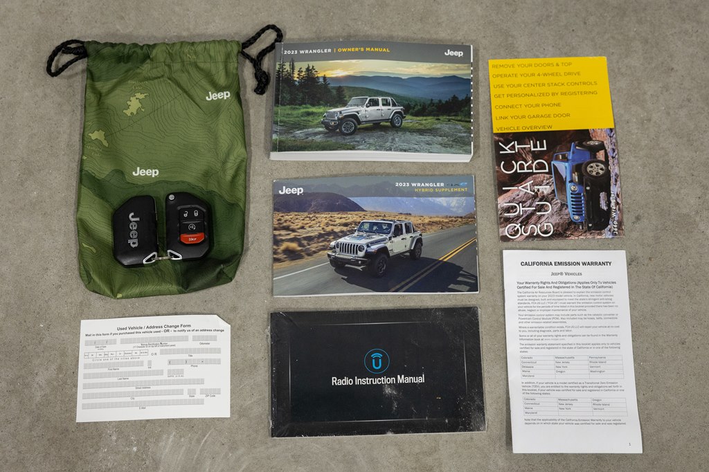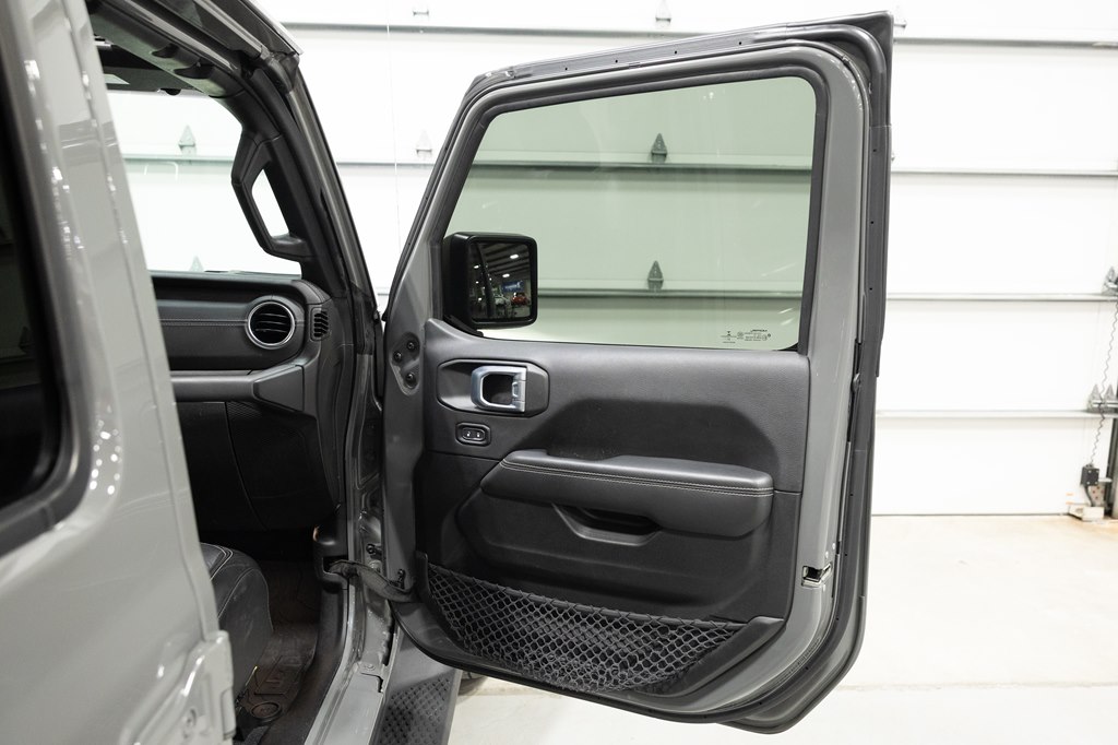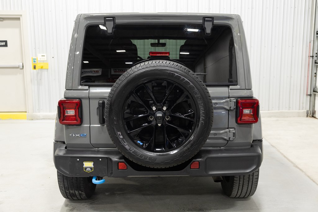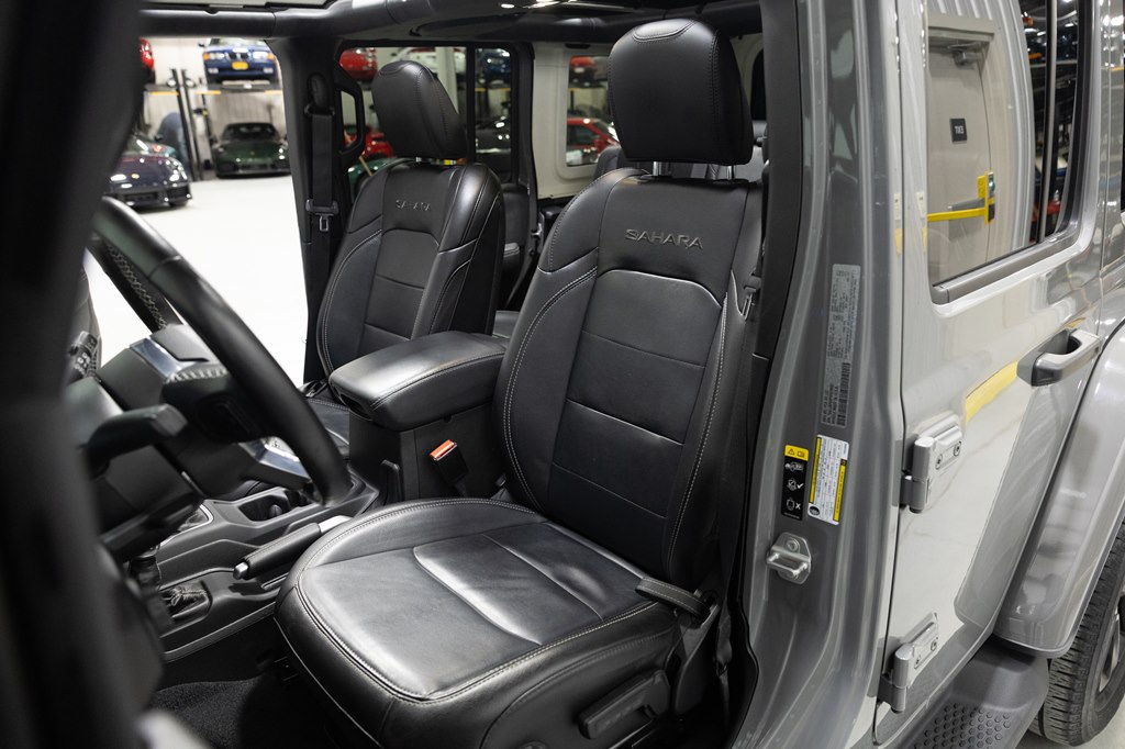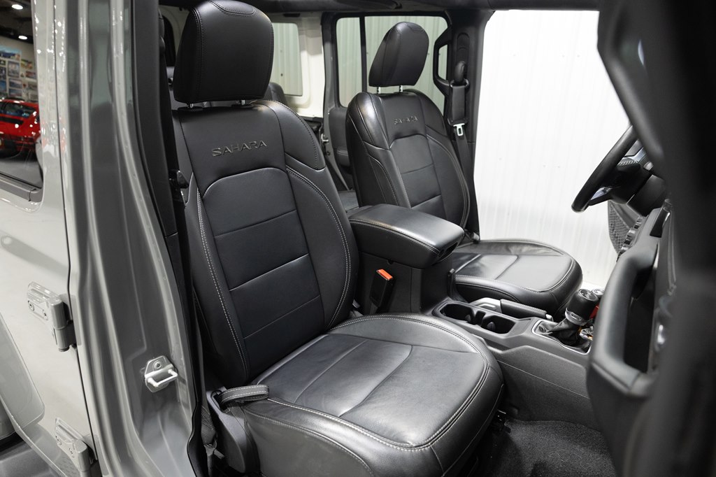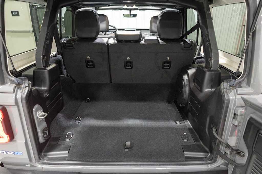 Offered for sale is this 2023 Jeep Wrangler Sahara 4xe 4 door hard top with SKY One-Touch roof, finished in Sting-Gray Metallic over a black cloth interior, powered by a hybrid drivetrain combining a 2.0-liter 4 cylinder engine with two electric motors with battery assistance, running power through a full time 4-wheel drive system with an 8-speed automatic transmission, with 35,125 miles on the odometer. The Jeep Wrangler is the American icon that needs no introduction. An offspring of the original Willys Jeep, the CJ/Wrangler product line has been both popular and almost impervious to any market trends or potential competition, with civilian models available since the end of World War II. Even with their steady popularity, it was the addition of a four-door option in 2007 that saw a massive surge in sales with the increased versatility that came with the bigger platform. This example of the Wrangler is the 4xe hybrid model, and critically, has records for its recently performed battery recall – one that many hybrid Jeeps are still waiting for. Specifications for this Wrangler include the Sahara package with LED headlamps, Uconnect Entertainment system with the 8.4-inch center display, Android Auto and Apple CarPlay, the Cold weather group with remote start, heated seats and steering wheel, Sky One-Touch retractable top, Selec-Trac full time 4wd, and rear window wiper with defroster.